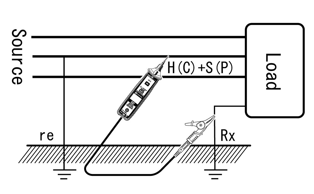 This is a simplified earth resistance tester and uses the existing earth systems (with a sufficiently low earth resistance) such as buried metal pipes like main water pipe, common earth for commercial power supply and a lightning electrode on buildings and performs measurements based on the 2-pole measurement method.